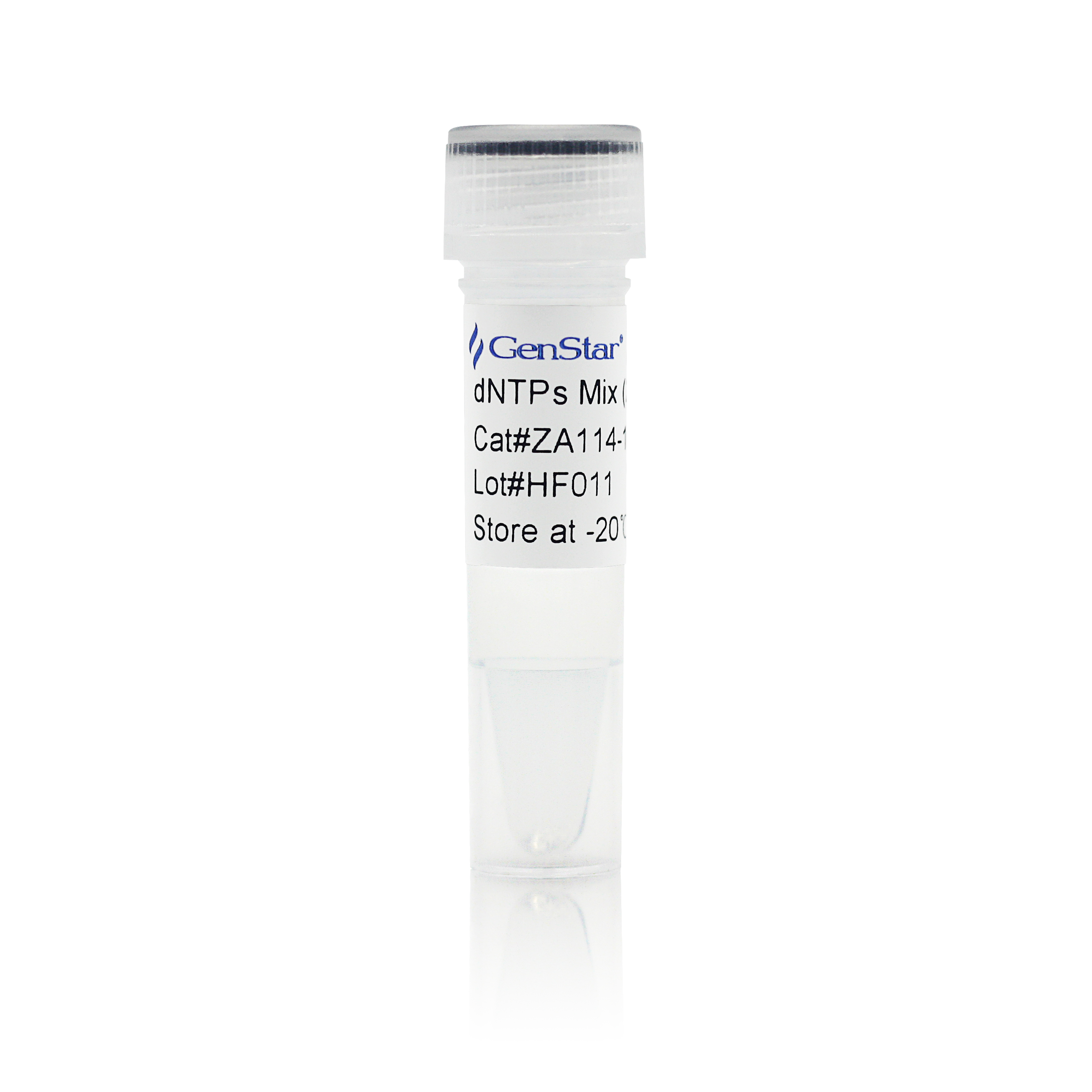 本品由等摩爾數(shù)的 dATP、dTTP、dGTP 和 dCTP 混合而成,適用于作為 PCR 反應(yīng)或其它 DNA 聚合酶的底物。每種 dNTP 的終濃度為 2.5 mM,純度 ≥98%。經(jīng)檢測無 DNA 酶和磷酸酶污染。