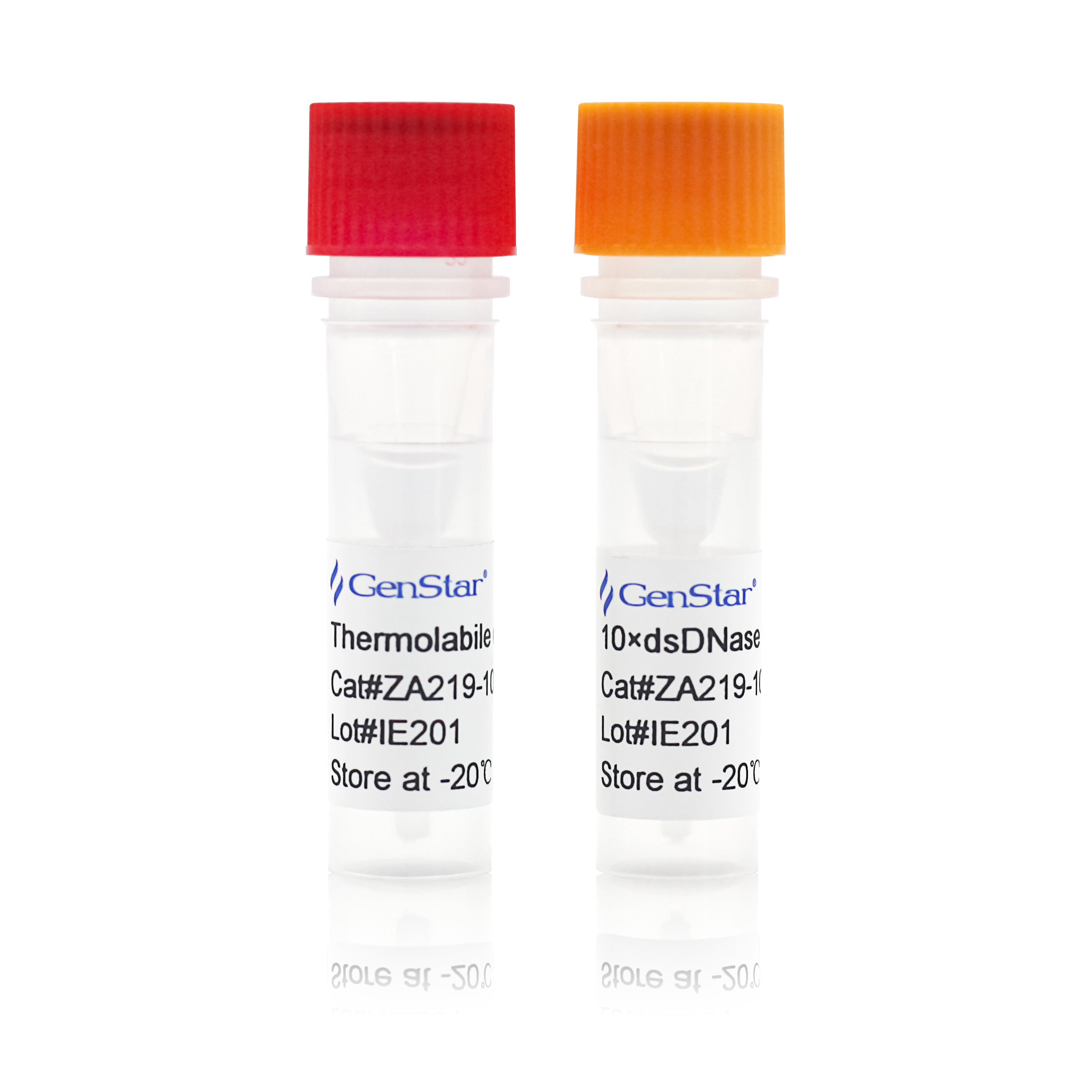 Thermolabile dsDNase 是一種熱敏感性的核酸內(nèi)切酶,能夠裂解 DNA 中的磷酸二酯鍵,生成帶有 5'- 磷酸和 3'- 羥基末端的寡核苷酸。本產(chǎn)品可特異性消化雙鏈 DNA(double-stranded DNA,dsDNA),不會(huì)對(duì)單鏈 DNA、引物、探針和 RNA 造成影響。同時(shí),本產(chǎn)品具有熱敏感特性,可在 55℃ 條件下快速失活。與傳統(tǒng)的使用 DNase I 去除基因組 DNA 污染的方法相比,無(wú)需額外加入 EDTA 等保護(hù)試劑,可有效減少對(duì) RNA 的損傷。Thermolabile dsDNase 適用于反轉(zhuǎn)錄實(shí)驗(yàn)前快速去除 RNA 樣本中的基因組 DNA 污染,節(jié)省實(shí)驗(yàn)時(shí)間,保證 RNA 水平定量的準(zhǔn)確性。