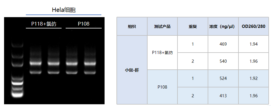 P108 采用 TRIGene +氯仿替代物,其提取效果與使用氯仿的相當,可在 RNA 抽提時,代替氯仿使用。