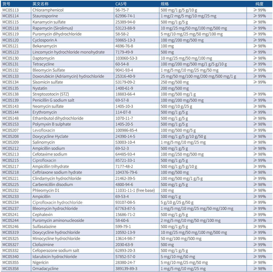 抗生素,主要是由細(xì)菌、霉菌或其他微生物產(chǎn)生的次級(jí)代謝產(chǎn)物或人工合成的類似物。通??梢岳斫鉃槟軌驓⑺兰?xì)菌或抑制其生長(zhǎng)的試劑,主要用于治療各種細(xì)菌感染或致病微生物感染類疾病,一般情況下對(duì)其宿主不會(huì)產(chǎn)生嚴(yán)重的副作用。GenStar 目前可提供多種抗生素用于科學(xué)研究,充分滿足您的實(shí)驗(yàn)需求,為您的實(shí)驗(yàn)保駕護(hù)航。