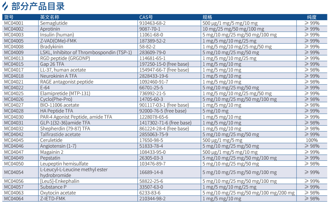 本界面只顯示部分產品信息,若想獲取更多小分子系列產品信息,請聯(lián)系我們銷售或致電技術支持熱線:400-666-3332