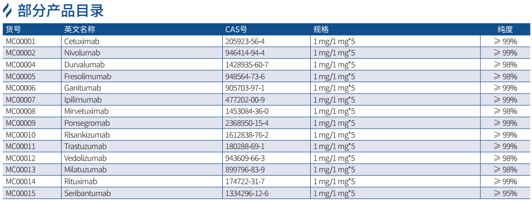 抗體抑制劑是一類能夠通過與特定抗原結(jié)合并阻斷其生物活性,從而抑制特定分子或細胞過程的抗體。抗體抑制劑具有與原始治療性抗體相同的活性生物成分,可作為陽性對照用于藥物效果評價等相關(guān)科學(xué)研究,同時也可以輔佐驗證靶點蛋白的功能活性。GenStar 現(xiàn)提供數(shù)百種抗體抑制劑助力科研工作者,包括鼠源抗體、嵌合抗體、人源抗體、雙特異性抗體等,涉及一些熱門靶蛋白 PD-L1、PD-1、VEGF、EGFR、HER2、TNF-α、CD20、Claudin18.2、CTLA4、CD3、CD47、4-1BB 等。