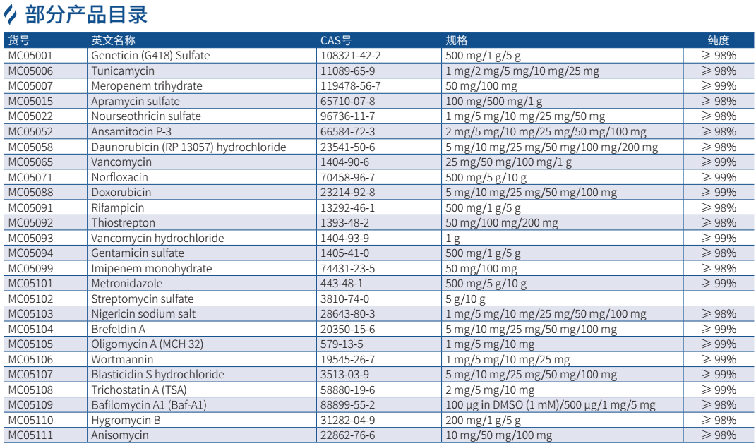 本界面只顯示部分產(chǎn)品信息,若想獲取更多小分子系列產(chǎn)品信息,請(qǐng)聯(lián)系我們銷(xiāo)售或致電技術(shù)支持熱線:400-666-3332