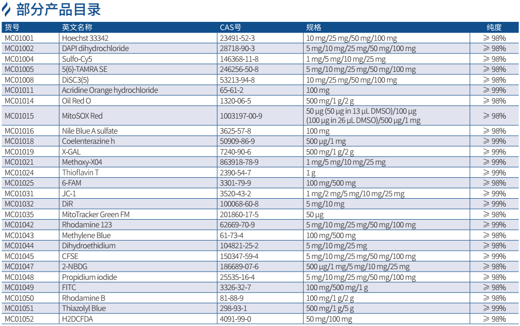GenStar 目前擁有近 200 種熒光染料試劑,覆蓋細胞染色分析、動物活體成像、生物偶聯(lián)、標記化學(xué)等眾多熱門研究領(lǐng)域,具有靈敏度高,穩(wěn)定性好,熒光強度高等特點。