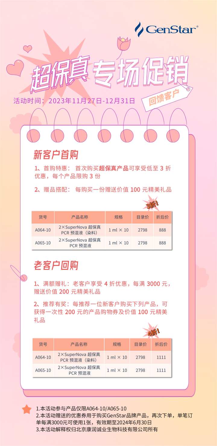 獲此殊榮,離不開(kāi)廣大客戶(hù)的信任和支持,GenStar 特推出超保真產(chǎn)品終極感恩特惠購(gòu),和您共享這份榮譽(yù)和喜悅,與您共赴生命科學(xué)成功之路。